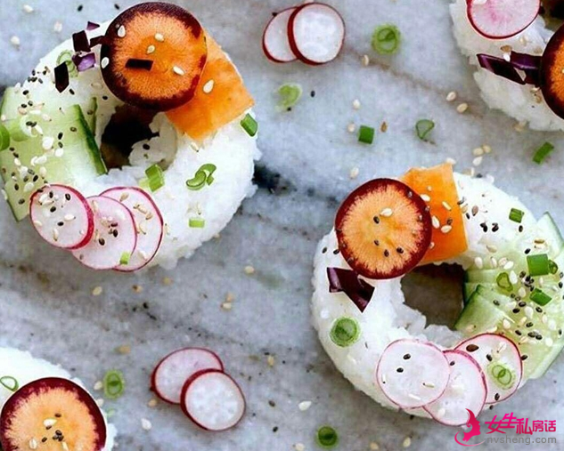 喜欢吃寿司的人可能会觉得一口就吃完的寿司不够过瘾,那么最近新出的甜甜圈寿司一定会受到喜爱。甜甜圈寿司不只大还很好看,看第一眼你就想拍照,看第二眼你就想吃它,再看第三眼,以后寿司就认准甜甜圈寿司啦。