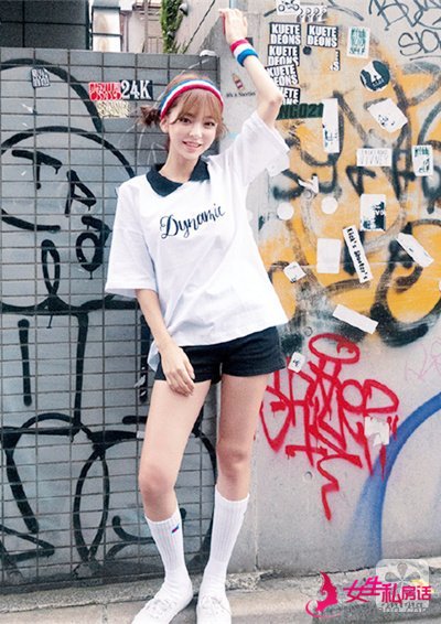 想不出如何搭配的时候,不妨就这样T恤+短裙~干净利落却又不单调~