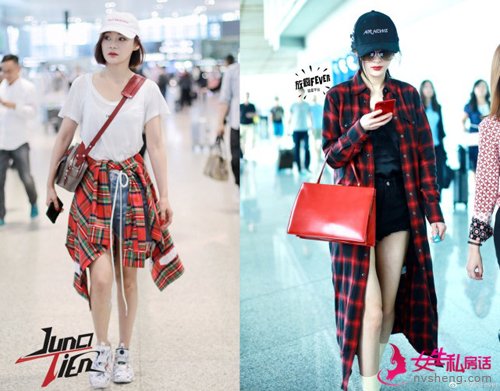 比如杨幂前段时间机场 街拍 穿得就是格纹衬衫,但是这款oversize的衬衫,杨幂穿着有点显胖。一般人穿也挺容易灾难。