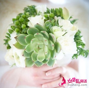 婚礼上的新娘手上除了要有婚戒,当然也不能没有手捧花。一般新娘都会选择绽放的芬芳的花朵做手捧花,但是,用多肉植物做手捧花更显得新娘子清纯又迷人呢。